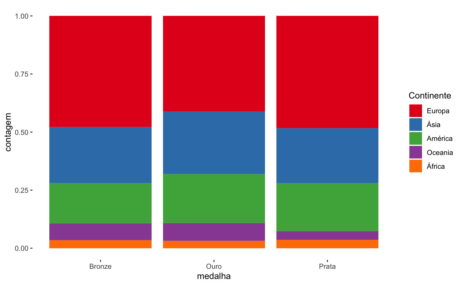 ggplot(data = olimp_continentes, aes(x = medalha, y = contagem)) +