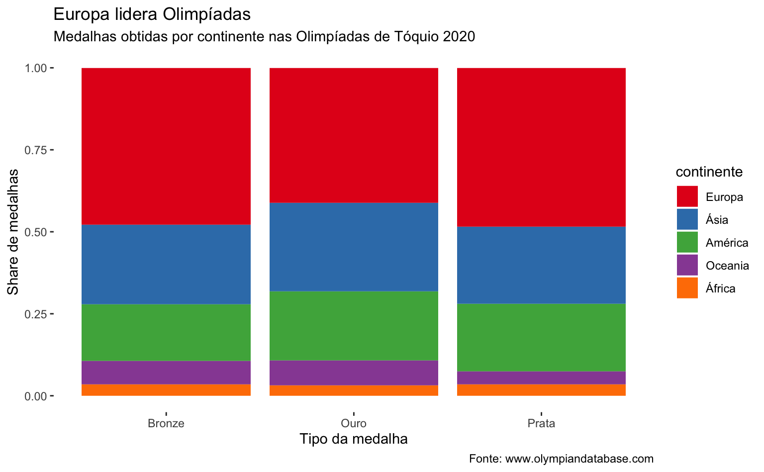 subtitle = "Medalhas obtidas por continente nas Olimpíadas de Tóquio 2020",