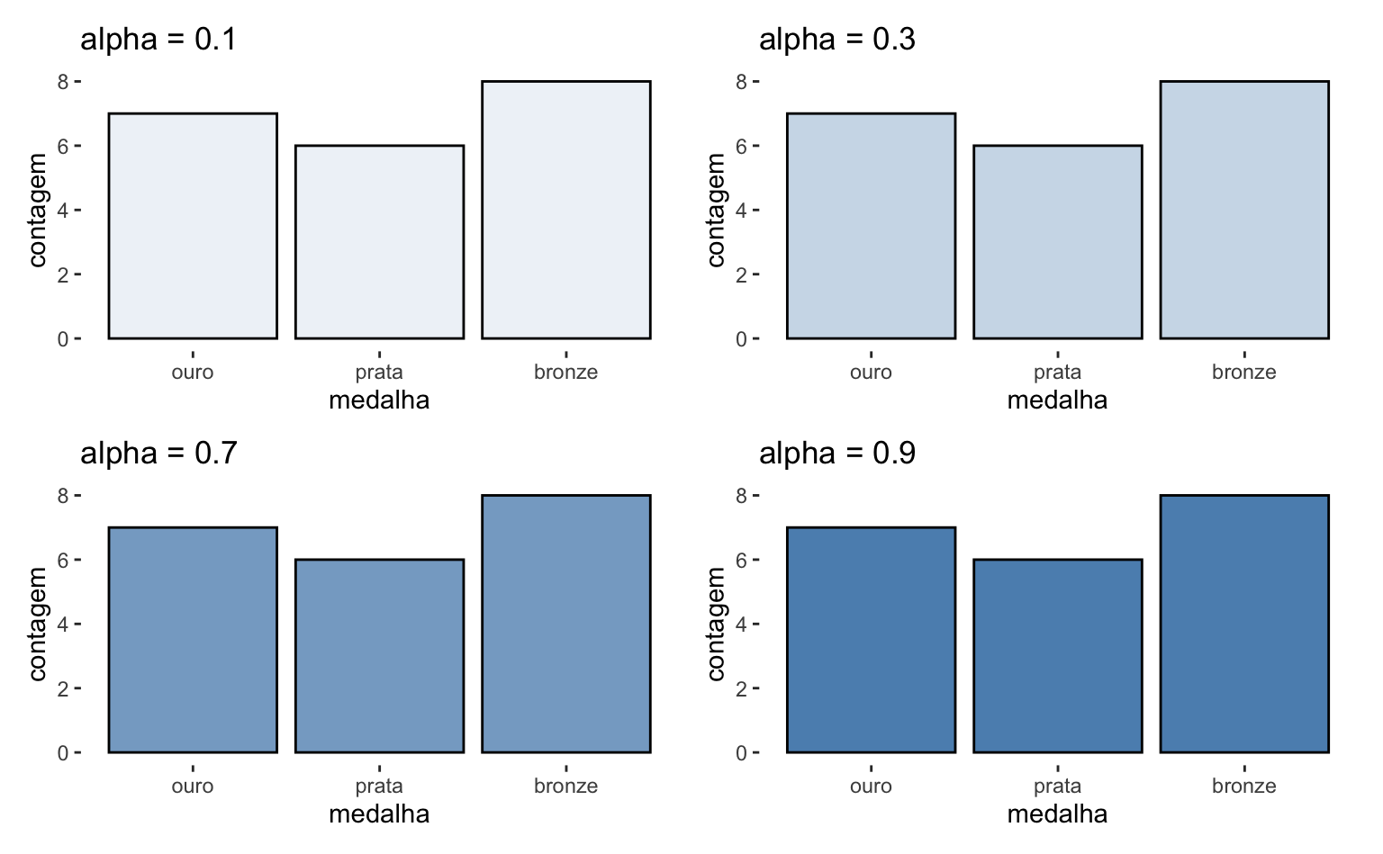 color- Define a cor do contorno da coluna.fill- Define a cor que preenche a coluna.alpha- Define o nível de transparência das cores.