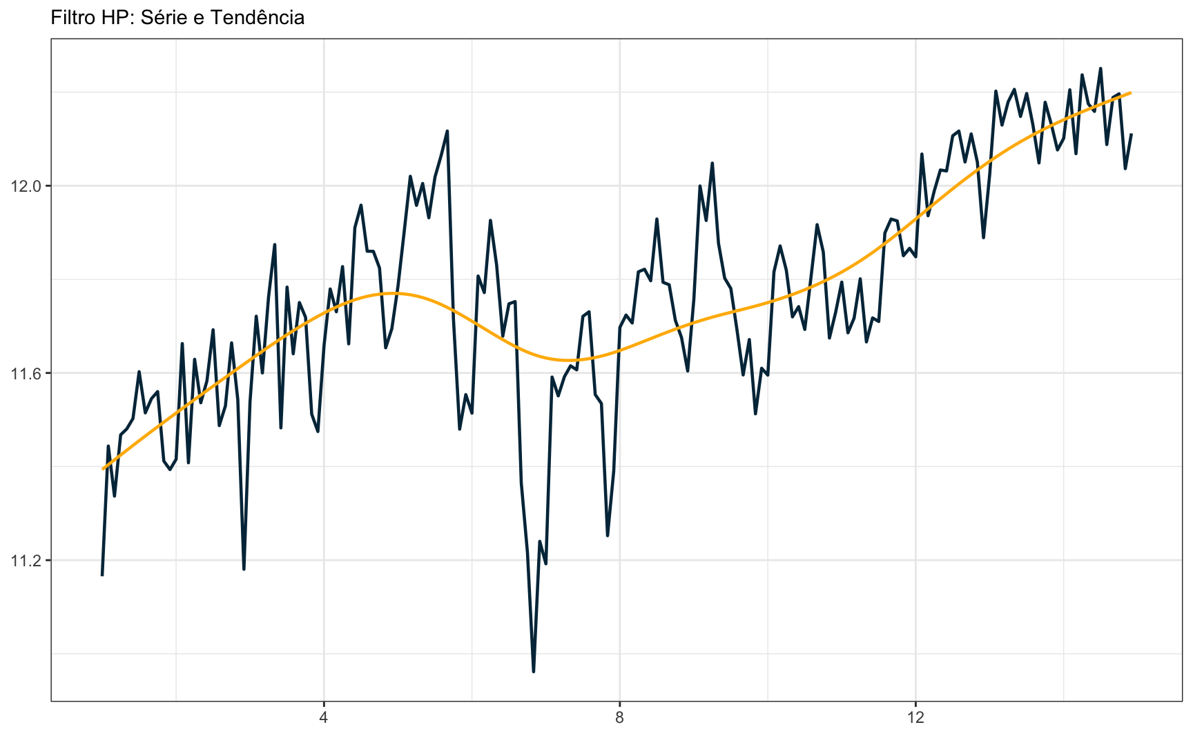 labs(subtitle = "Filtro HP: Série e Tendência", x = NULL, y = NULL) +